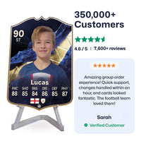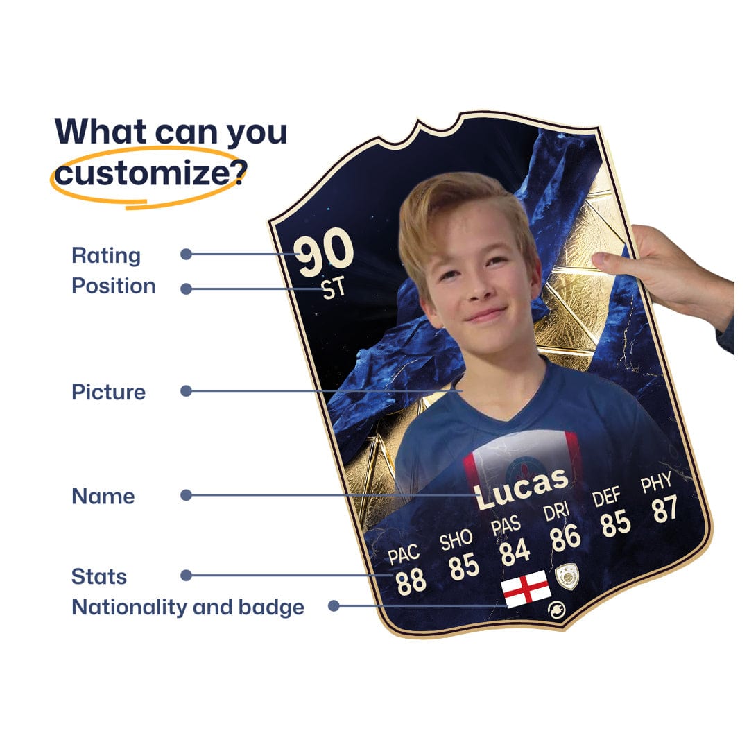 Yes! Our football card designers will remove the background from the photo you upload so it looks just like the football cards you might’ve seen games like EA FC 25, EA FC 24 or FIFA. We’ll also position the photo perfectly on the football card so it looks great. If there are any problems with the quality of your photo, we’ll reach out and let you know. Plus, our website's AI will remove the background on the image for visual purposes before purchase so you can see it without a background on the card.