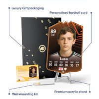 CardsPlug is home to the world’s favourite personalised football cards. Our easy football card builder lets you make a real life football card with your own name, photo, and skill ratings. With 100+ designs to choose from and some inspired by EA SPORTS FC 26 cards seen in EA FC 26, EA FC 25 and FC 24 as well as FIFA cards seen in games like FIFA 23 and FIFA 22.