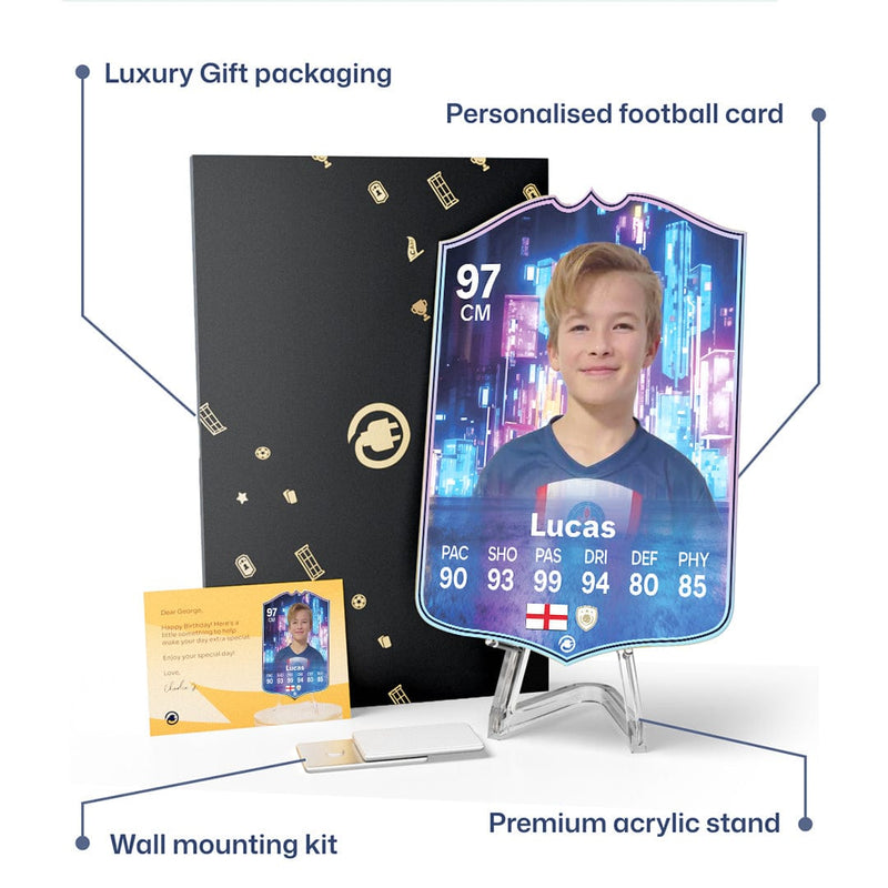 CardsPlug is home to the world’s favourite personalised football cards. Our easy football card builder lets you make a real life football card with your own name, photo, and skill ratings. With 100+ designs to choose from and some inspired by EA SPORTS FC 26 cards seen in EA FC 26, EA FC 25 and FC 24 as well as FIFA cards seen in games like FIFA 23 and FIFA 22.