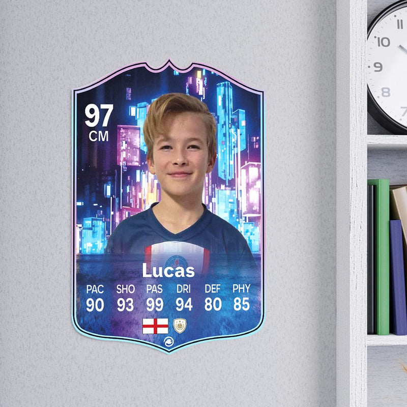 When it comes to personalising your card, the basic steps are to upload a photo and add a name to your card. Then you’ll add details like your player’s position and skill ratings out of 99 for each football skill shown on the card. Our online card builder makes this really easy. And if you aren’t a football card expert, don’t worry!