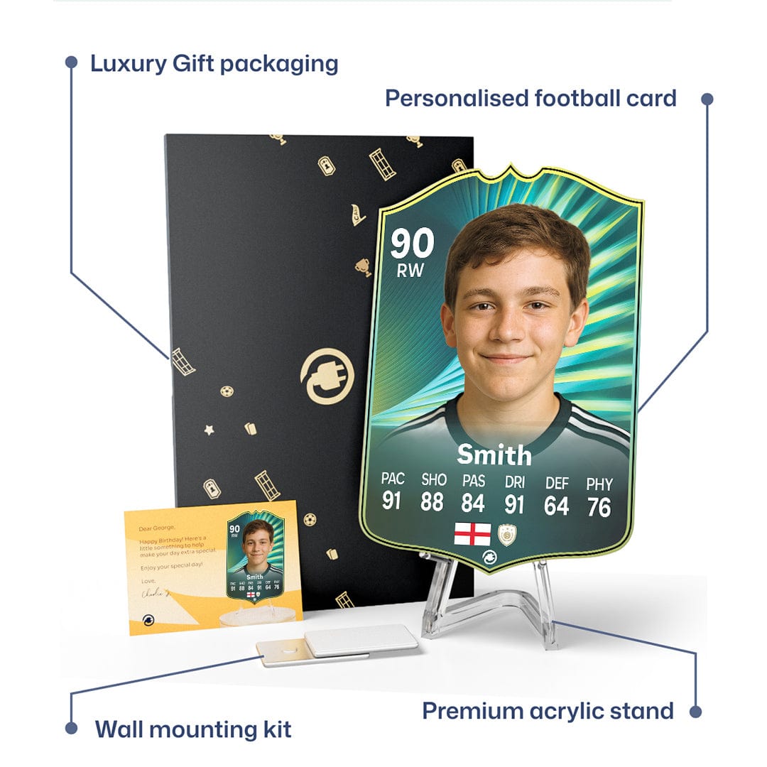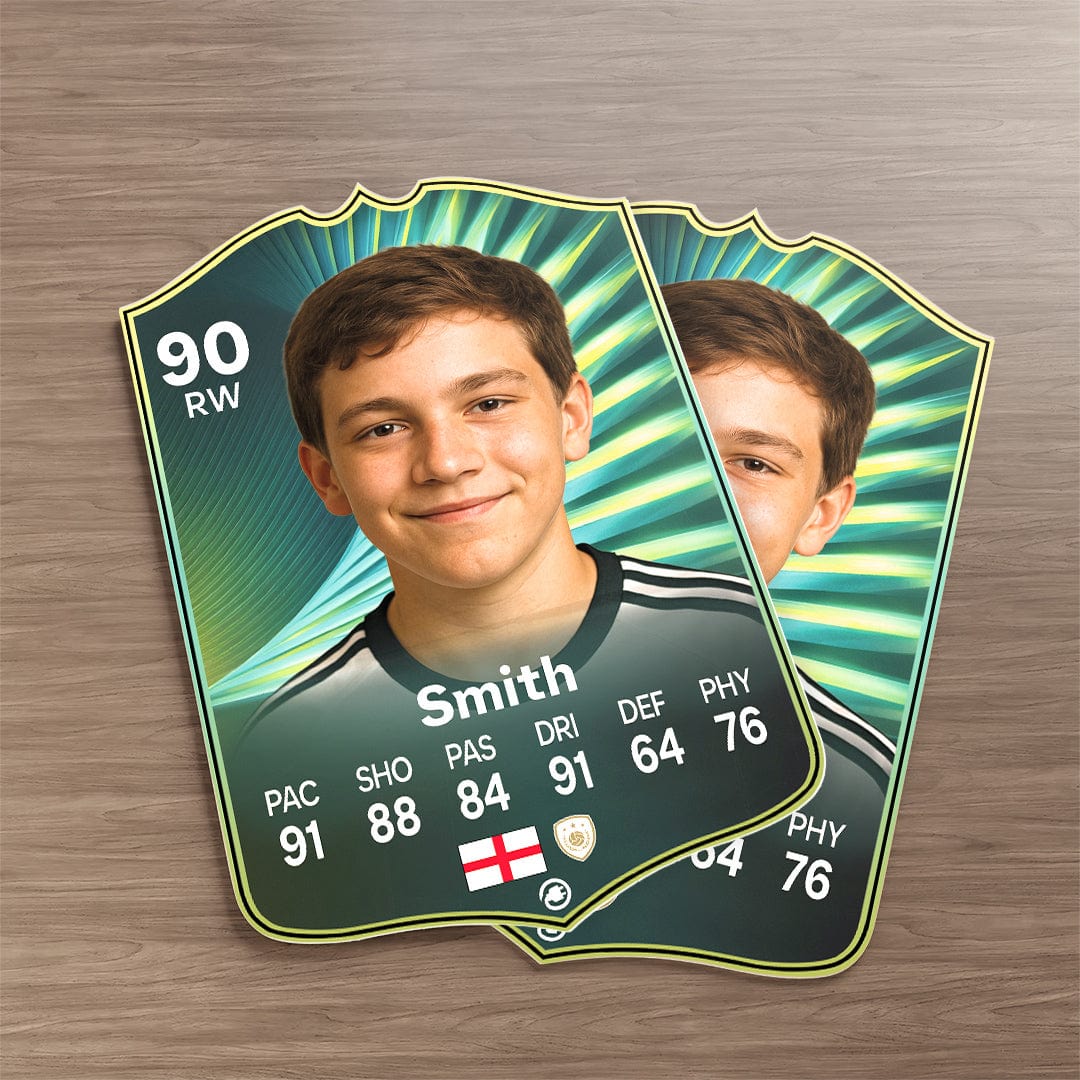 CardsPlug is home to the world’s favourite personalised football cards. Our easy football card builder lets you make a real life football card with your own name, photo, and skill ratings. With 100+ designs to choose from and some inspired by EA SPORTS FC 26 cards seen in EA FC 26, EA FC 25 and FC 24 as well as FIFA cards seen in games like FIFA 23 and FIFA 22.
