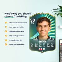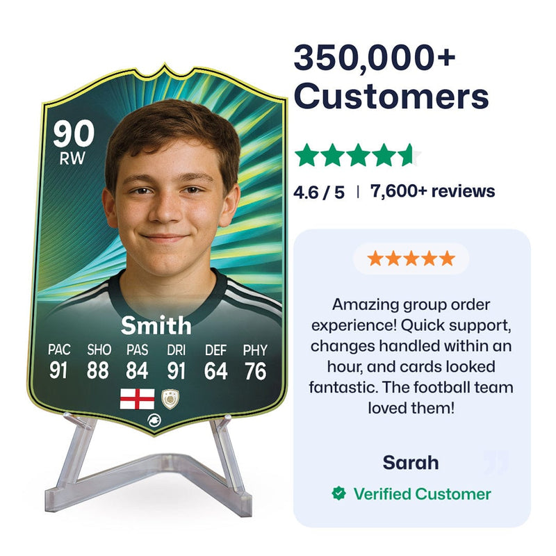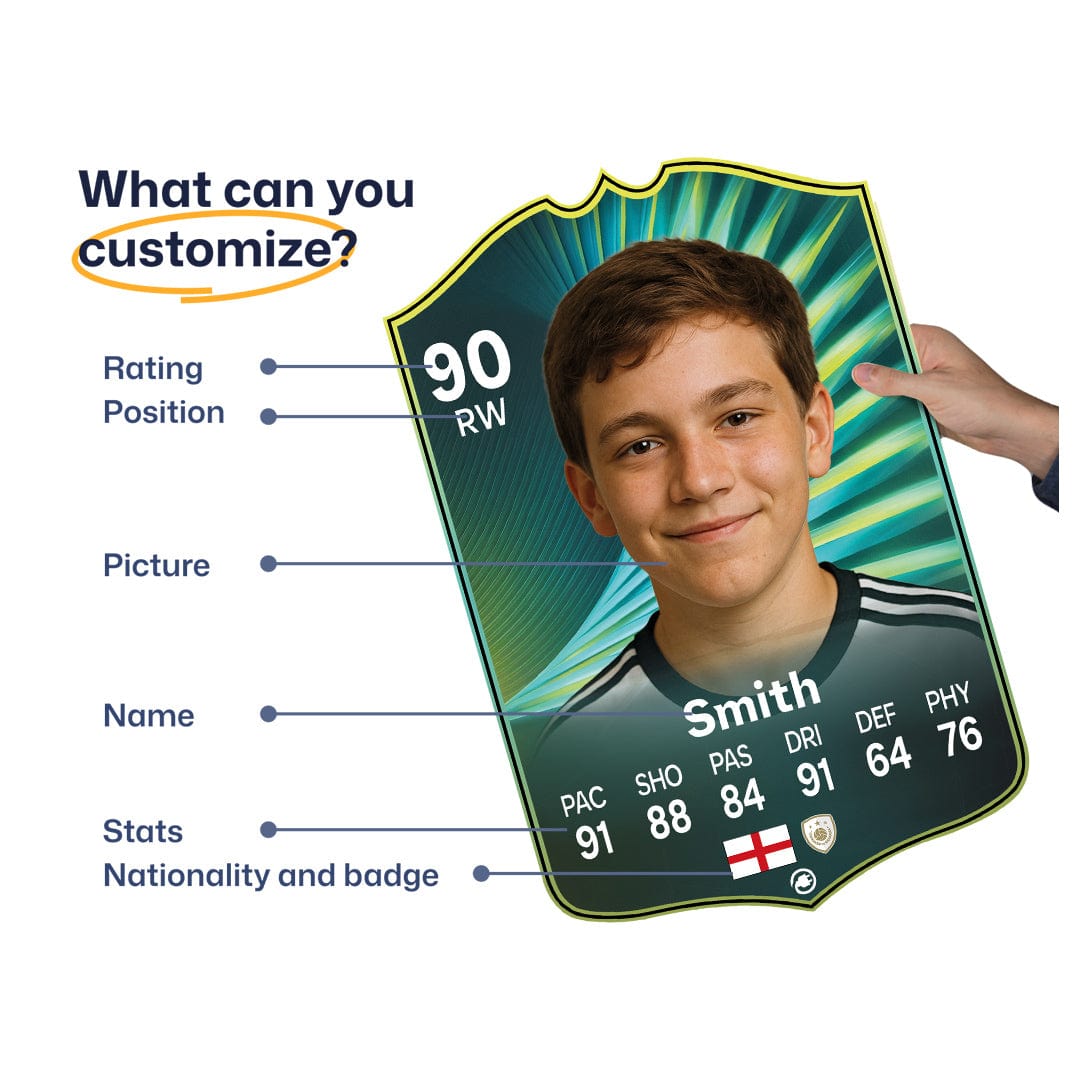 Yes! Our football card designers will remove the background from the photo you upload so it looks just like the football cards you might’ve seen games like EA FC 25, EA FC 24 or FIFA. We’ll also position the photo perfectly on the football card so it looks great. If there are any problems with the quality of your photo, we’ll reach out and let you know. Plus, our website's AI will remove the background on the image for visual purposes before purchase so you can see it without a background on the card.