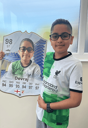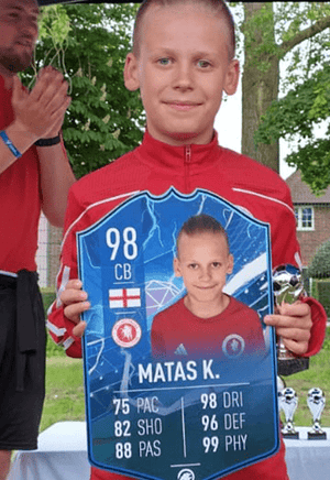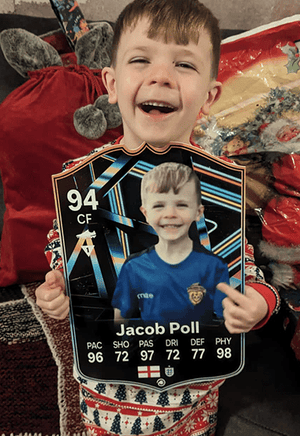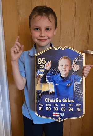 When it comes to personalising your card, the basic steps are to upload a photo and add a name to your card. Then you’ll add details like your player’s position and skill ratings out of 99 for each football skill shown on the card. Our online card builder makes this really easy. And if you aren’t a football card expert, don’t worry!