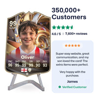 Yes! Our football card designers will remove the background from the photo you upload so it looks just like the football cards you might’ve seen games like EA FC 25, EA FC 24 or FIFA. We’ll also position the photo perfectly on the football card so it looks great. If there are any problems with the quality of your photo, we’ll reach out and let you know. Plus, our website's AI will remove the background on the image for visual purposes before purchase so you can see it without a background on the card.